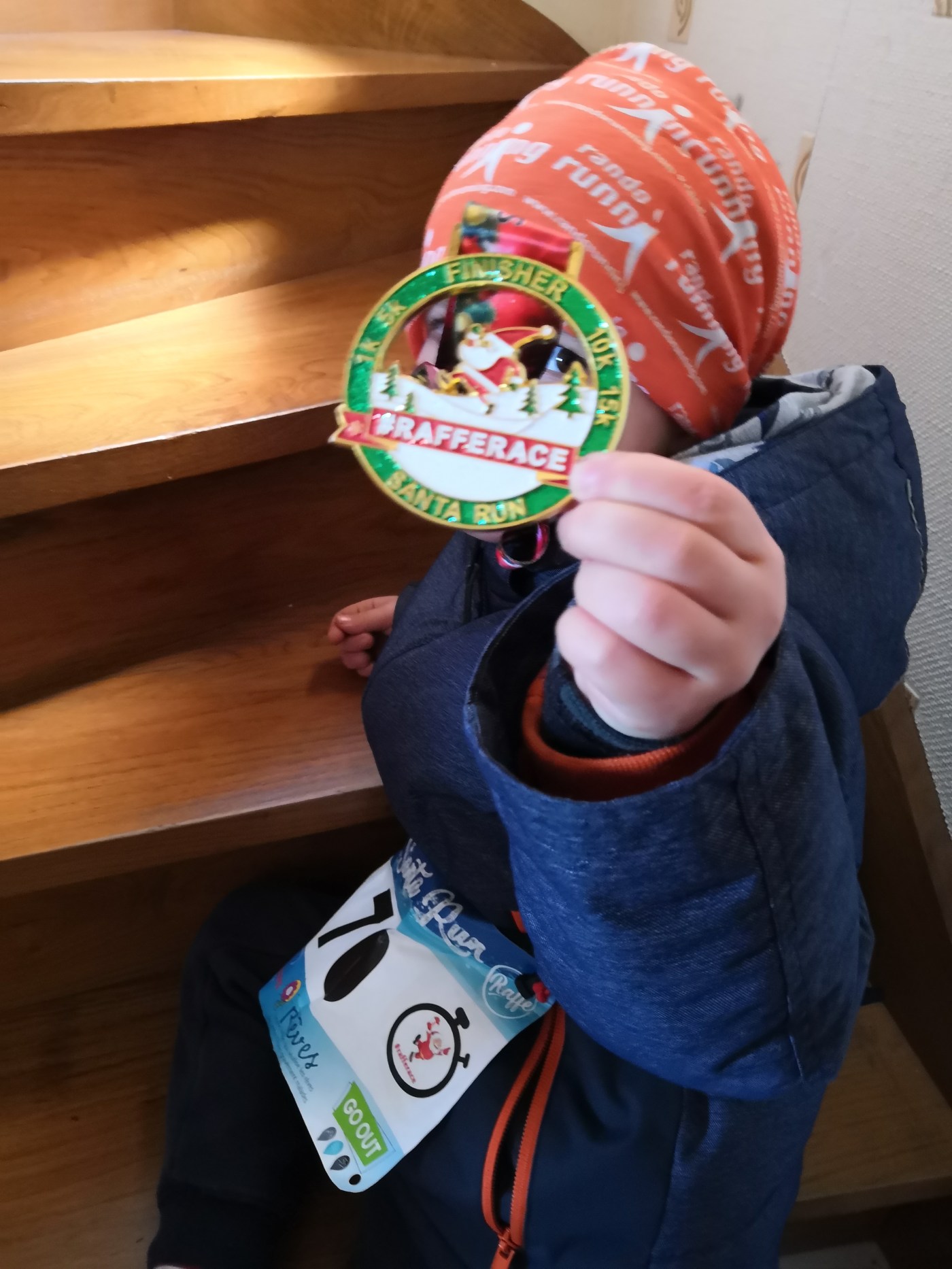 Et à la fin, comme dans chaque pack RaffeRace, une jolie médaille de Noël. Ravi de sa médaille, mais déçu du côté « mais c’était pas une vraie course j’étais tout seul » (réaliste le bonhomme j’vous jure!).